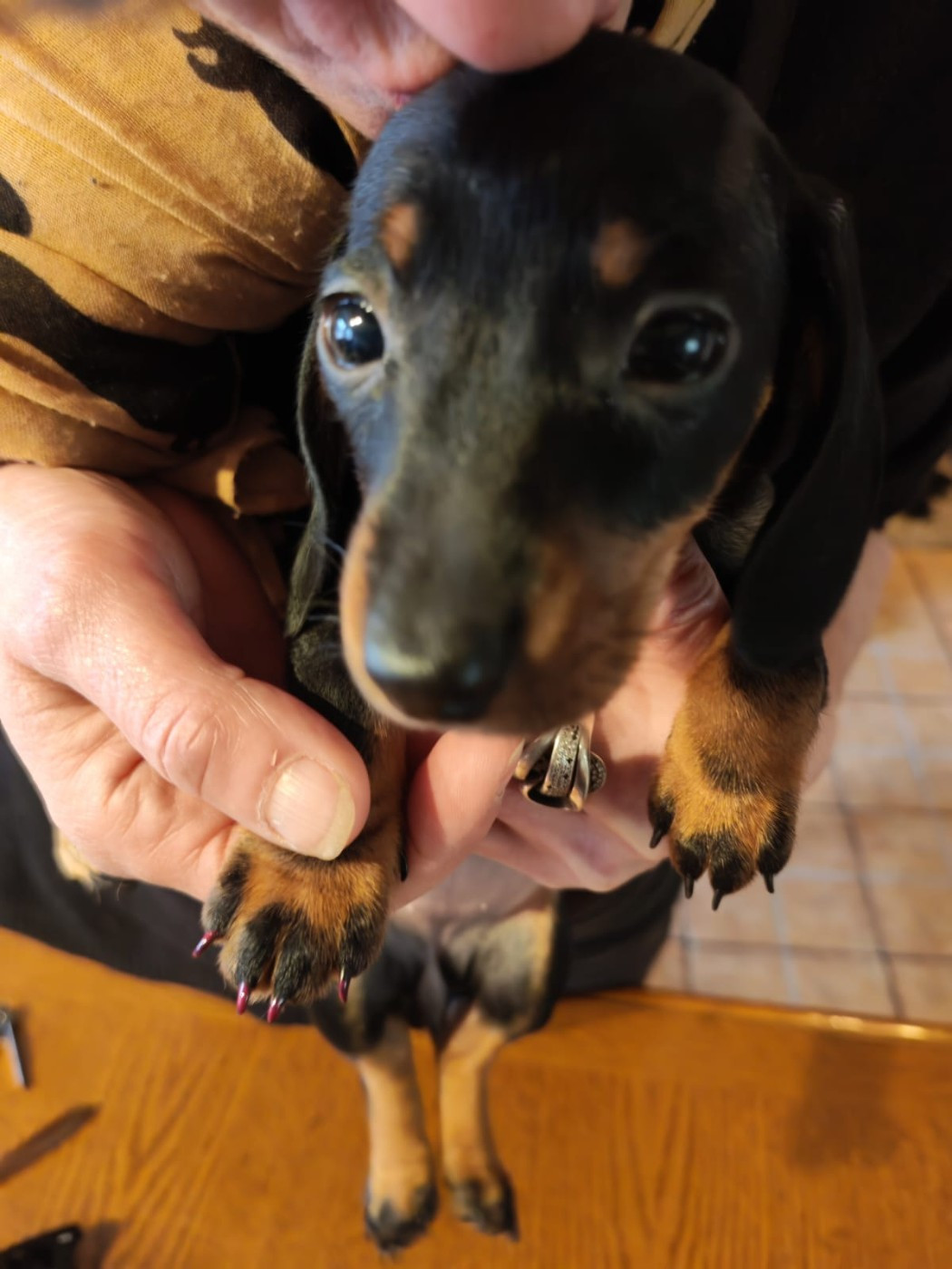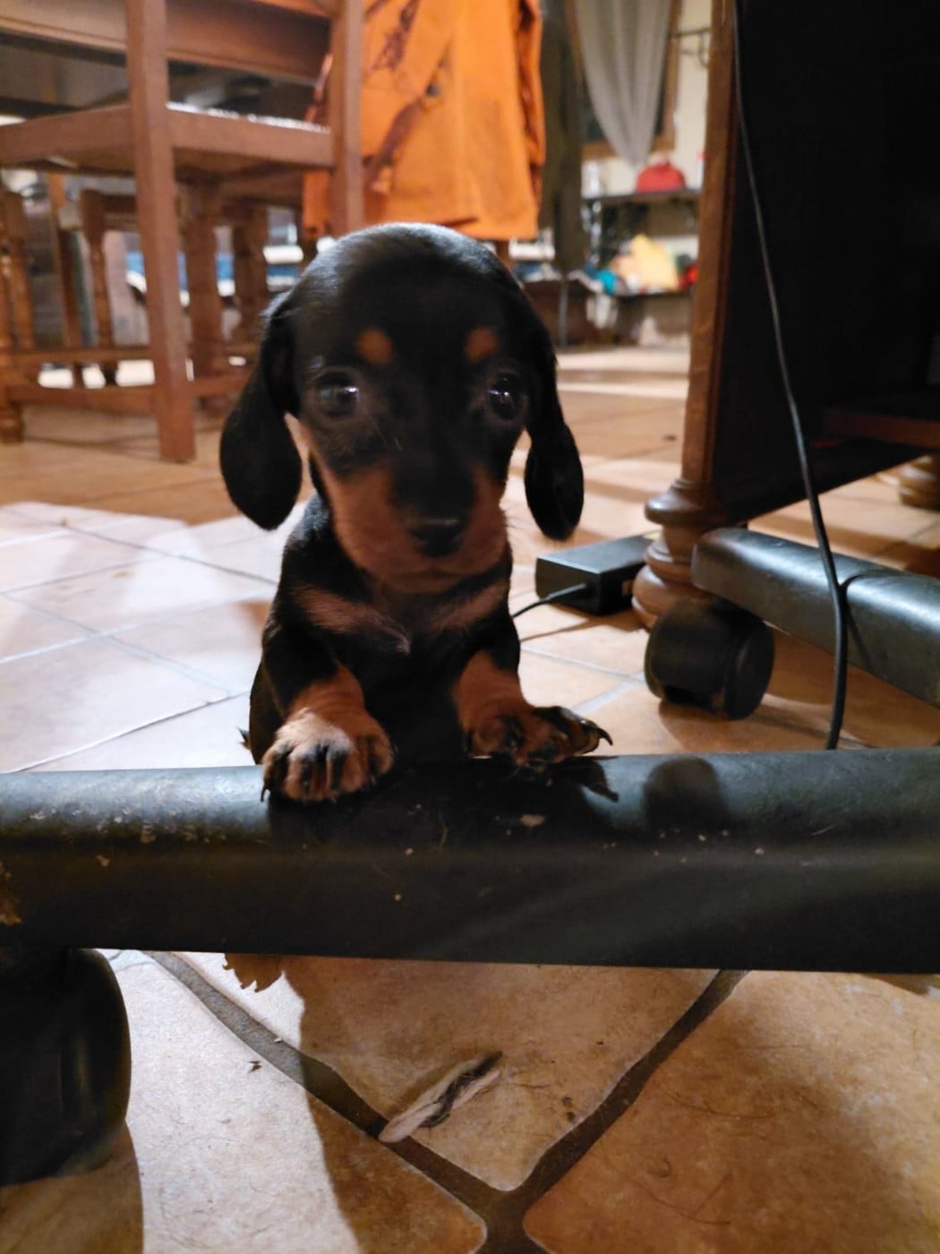 jolie portée de teckel nain poil ras noir et feu, inscrite au lof.